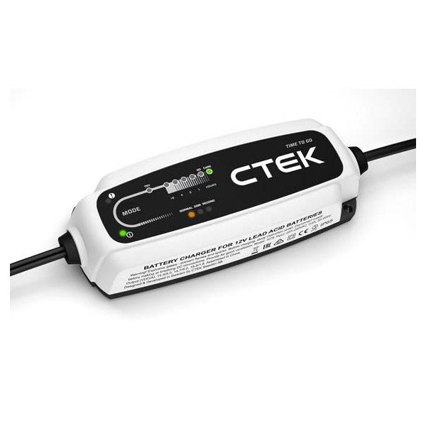 CT5 TIME TO GO es el único cargador del mercado que puede decirle cuándo su batería estará lista para usar. Una serie de luces LED indican las diferentes etapas de carga y el tiempo que se tardará en cargar suficientemente la batería.