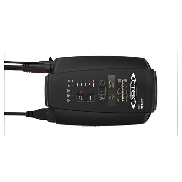 El MXTS 40 de CTEK es un cargador de baterías para talleres profesionales, con sistema de carga totalmente automático en 8 fases para baterías de terminal ácido de 12 y 24V, diseñada para satisfacer las exigencias de los talleres modernos.
