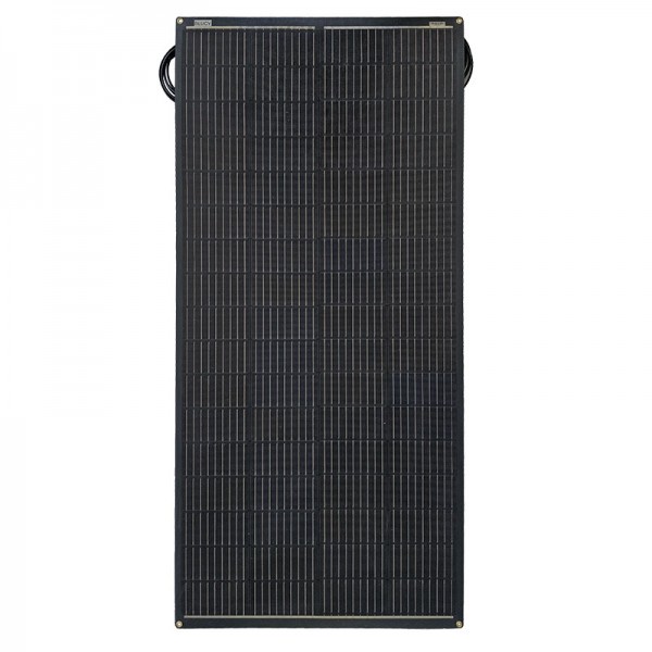 Panel solar monocristalino semiflexible, 200W, 1440x673x3 mm. Fabricado con material reforzado que protege la celda solar y es a la vez súper flexible, permitiendo su instalación en superficies curvas. Caja de conexiones trasera.